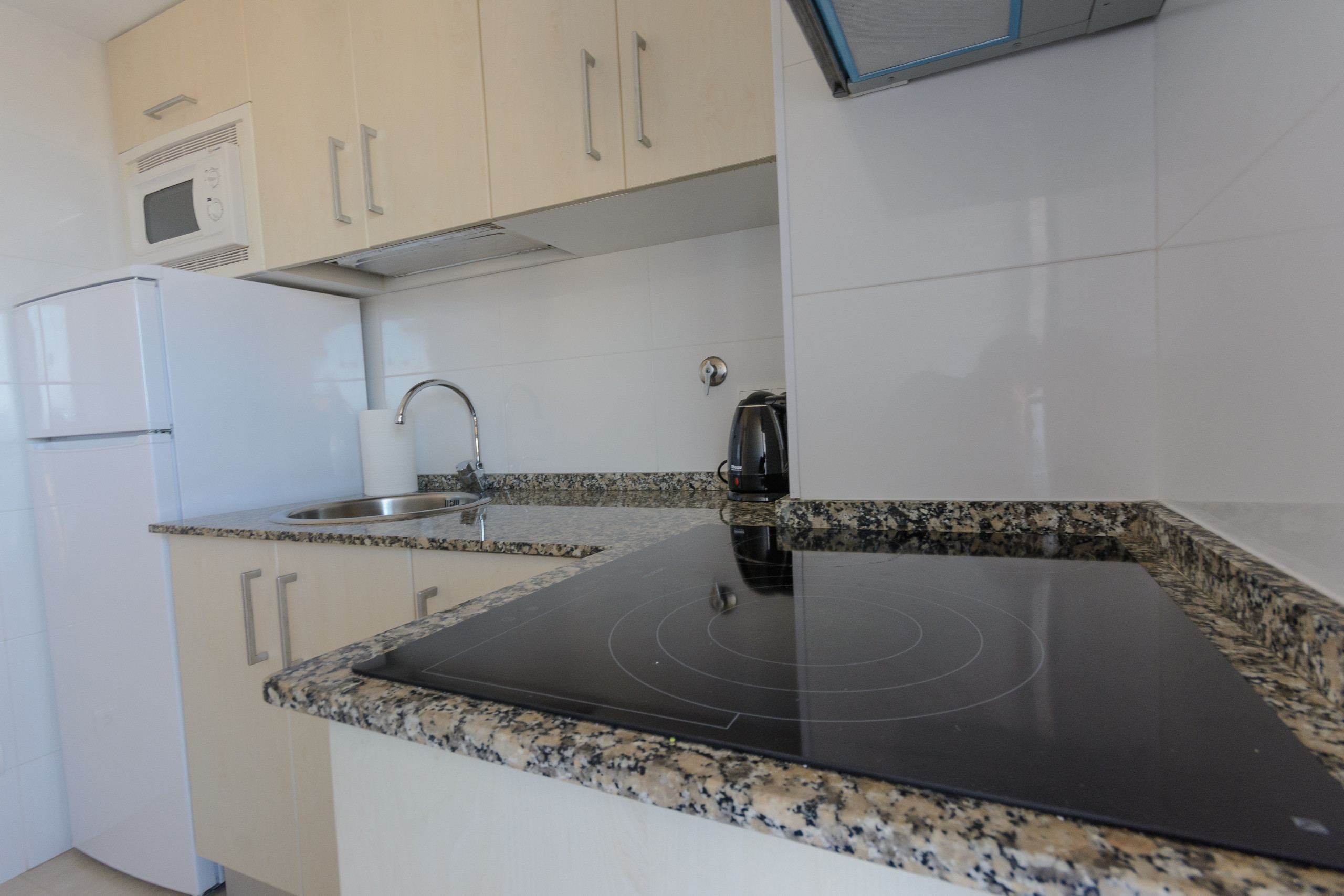 De aparte keuken, met keramisch fornuis, is uitgerust met koelkast, magnetron, servies/bestek, keukengerei, koffiezetapparaat, broodrooster en waterkoker.
